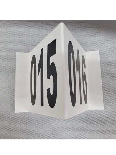 These are 3mm plastic signs with Retro-Reflective Bar Codes and Human Readable locations. They are hung from the ceiling deck and can be scanned at long range distances.