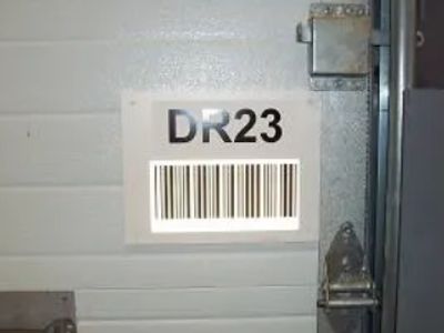 These 3mm plastic signs have a Retro-Reflective Label and the door designation in human readable. Note in this photo how the Retro-Reflective label stands out. Made of plastic, these can be mounted to the dock door with screws, rivets or double sided tape.